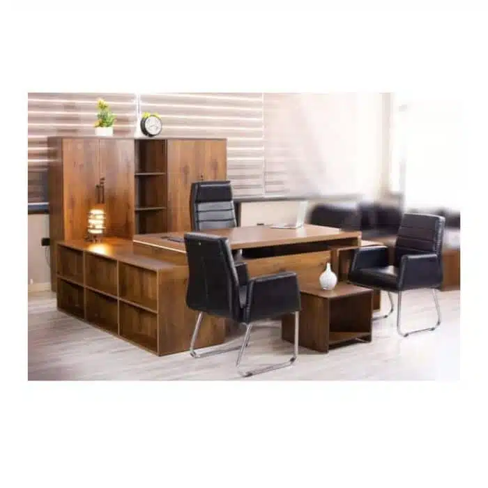 مكتب مدير خشب بني مع درج هو الحل المثالي لحياة المديرين والقادة الباحثين عن الكفاءة والتنظيم. فهو أفضل قطعة أثاث مكتبي لأنه يوفر مساحة عمل متكاملة تدعم إنتاجيتك اليومية وتجعل تنظيم الملفات والأدوات سهلاً بفضل تصميمه العملي ووحدات التخزين المتعددة.